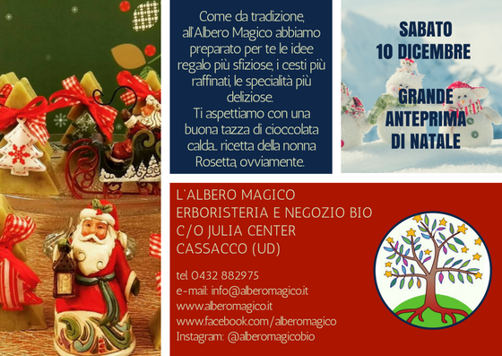Come da tradizione, all’Albero Magico lasciati trasportare nell’atmosfera natalizia e fatti ispirare dai suoni e dai profumi della stagione più festosa dell’anno.