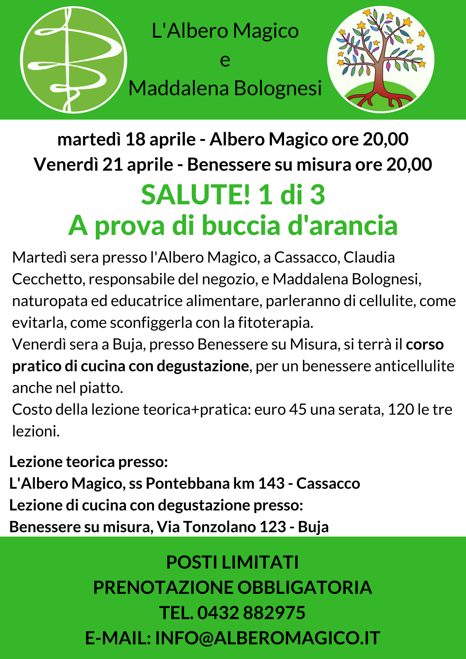 Lezione pratica di cucina con degustazione del corso per la prevenzione della cellulite a cura di Maddalena Bolognesi.