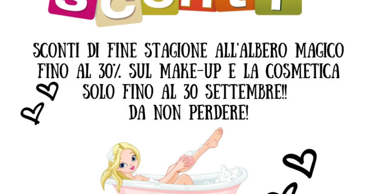Fino a fine settembre, sconti fino al 30% sulle linee cosmetiche e di make-up in negozio.